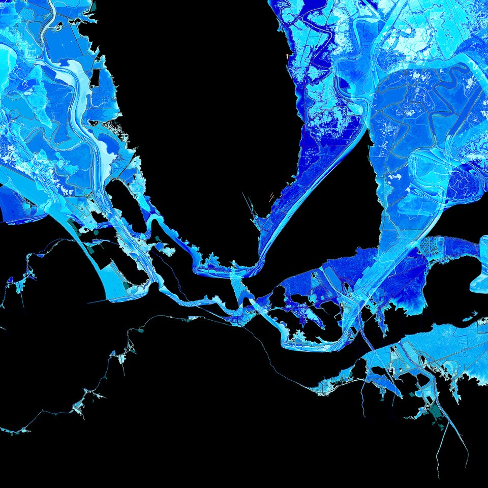 Bridging the worlds of abstract aesthetic creation, data science, and photo documentation, TIDES bears witness to the scale of loss of our bay tide lands, and captures the liminal space – industrial, natural, social – between the low tides of today